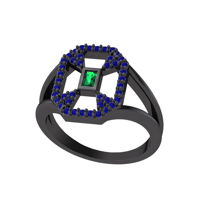 Yeşil kuvars ve lab safir 925 ayar siyah rodyum kaplama gümüş yüzük