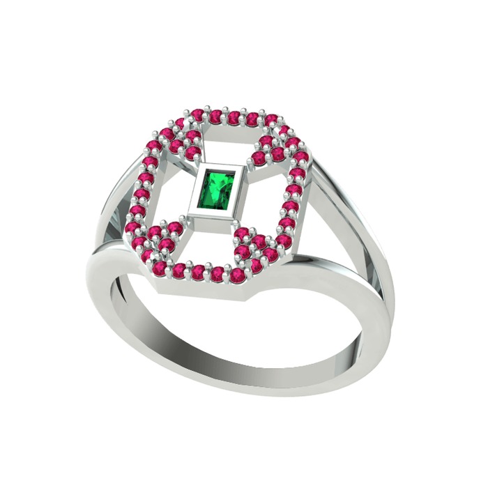 Yeşil kuvars ve rodolit garnet 18 ayar beyaz altın yüzük