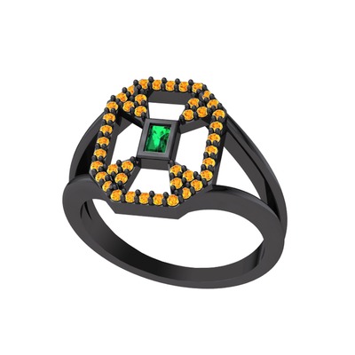 Yeşil kuvars ve sitrin 925 ayar siyah rodyum kaplama gümüş yüzük