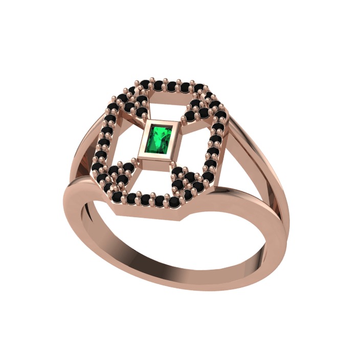 Yeşil kuvars ve siyah zirkon 8 ayar rose altın yüzük