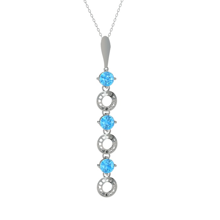 Akuamarin 14 ayar beyaz altın kolye (40 cm gümüş rolo zincir)