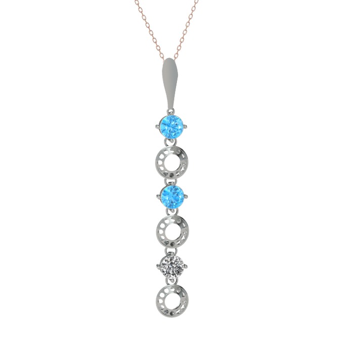 Akuamarin ve beyaz zirkon 925 ayar gümüş kolye (40 cm rose altın rolo zincir)