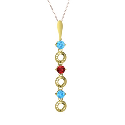Akuamarin ve garnet 8 ayar altın kolye (40 cm rose altın rolo zincir)