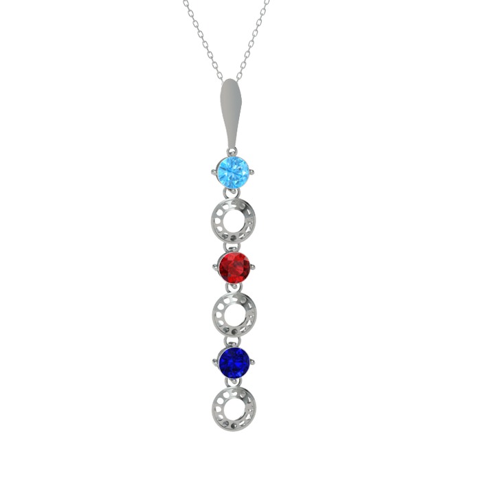 Akuamarin, garnet ve lab safir 925 ayar gümüş kolye (40 cm gümüş rolo zincir)