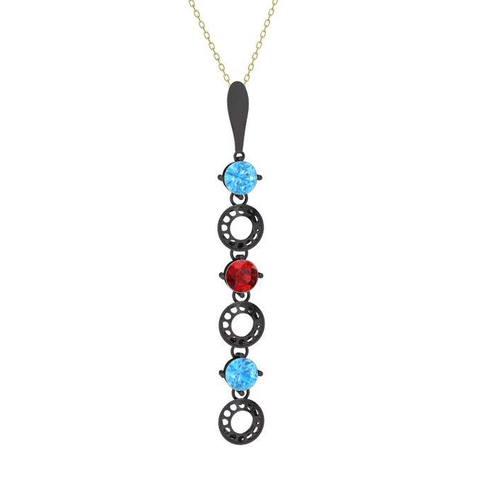 Akuamarin ve garnet 925 ayar siyah rodyum kaplama gümüş kolye (40 cm altın rolo zincir)