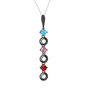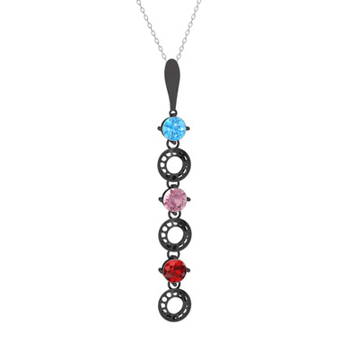 Akuamarin, pembe kuvars ve garnet 925 ayar siyah rodyum kaplama gümüş kolye (40 cm beyaz altın rolo zincir)