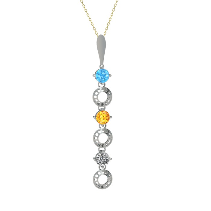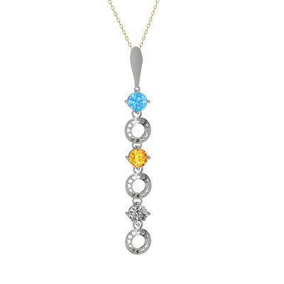 Akuamarin, sitrin ve beyaz zirkon 14 ayar beyaz altın kolye (40 cm altın rolo zincir)