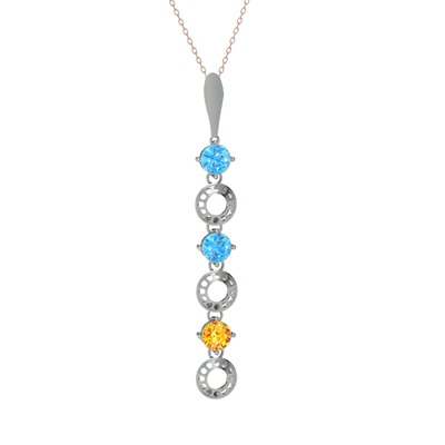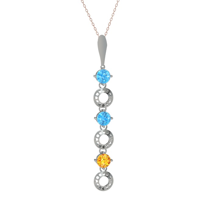 Akuamarin ve sitrin 925 ayar gümüş kolye (40 cm rose altın rolo zincir)