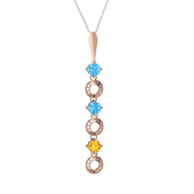 Akuamarin ve sitrin 925 ayar rose altın kaplama gümüş kolye (40 cm rose altın rolo zincir)