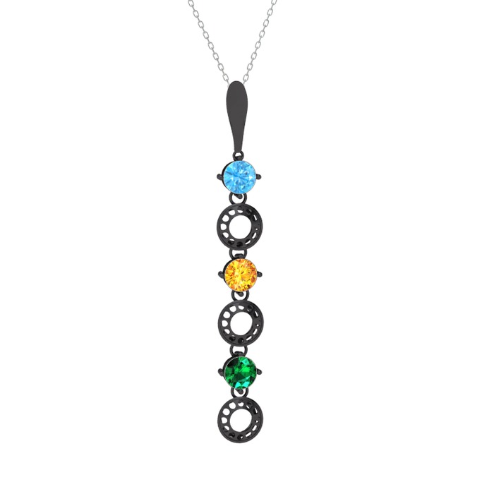 Akuamarin, sitrin ve yeşil kuvars 925 ayar siyah rodyum kaplama gümüş kolye (40 cm beyaz altın rolo zincir)