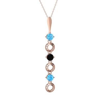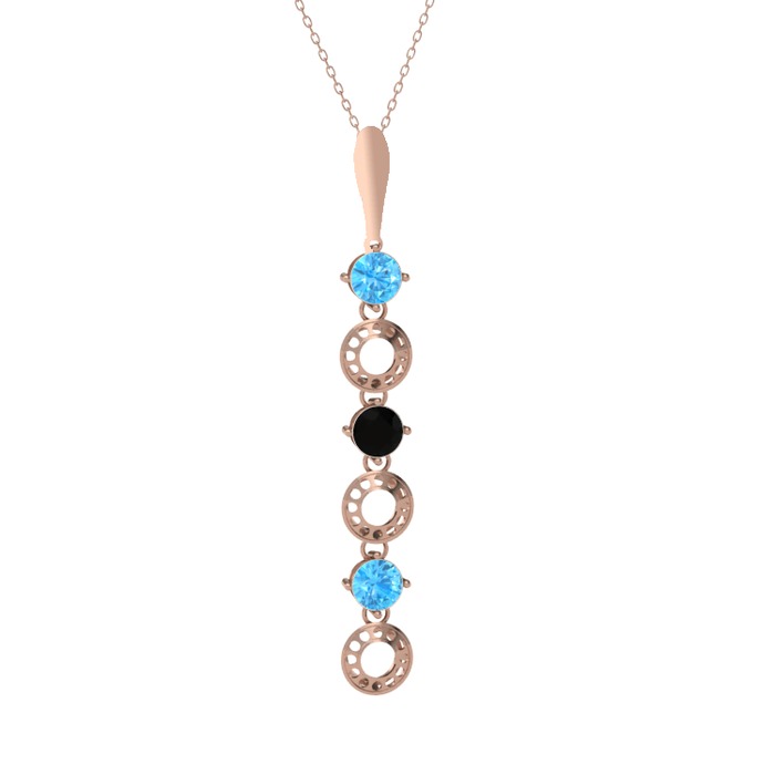 Akuamarin ve siyah zirkon 14 ayar rose altın kolye (40 cm rose altın rolo zincir)