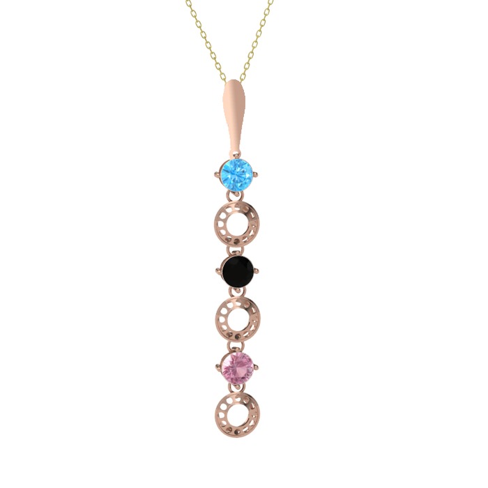 Akuamarin, siyah zirkon ve pembe kuvars 8 ayar rose altın kolye (40 cm altın rolo zincir)