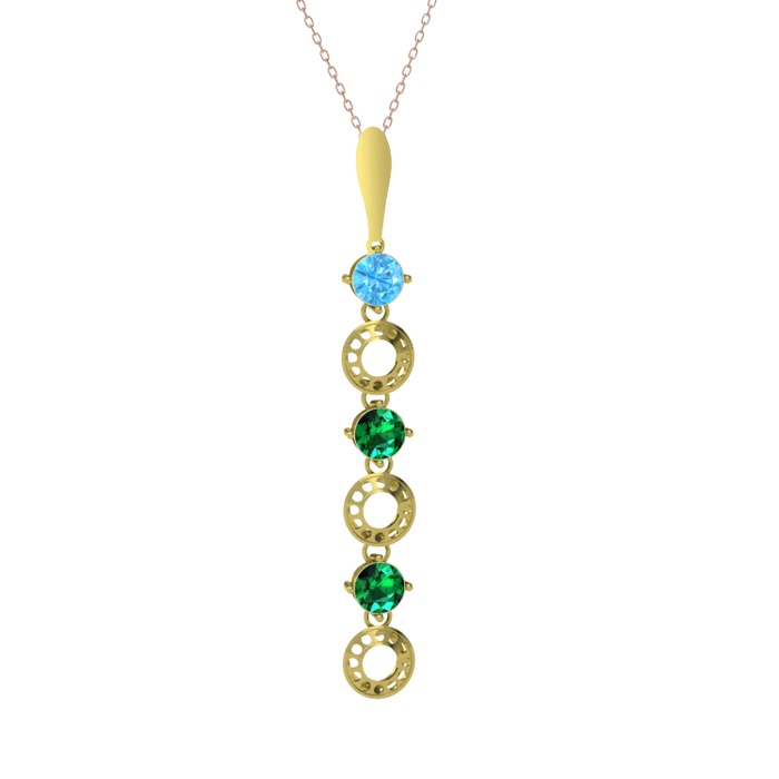 Akuamarin ve yeşil kuvars 925 ayar altın kaplama gümüş kolye (40 cm rose altın rolo zincir)