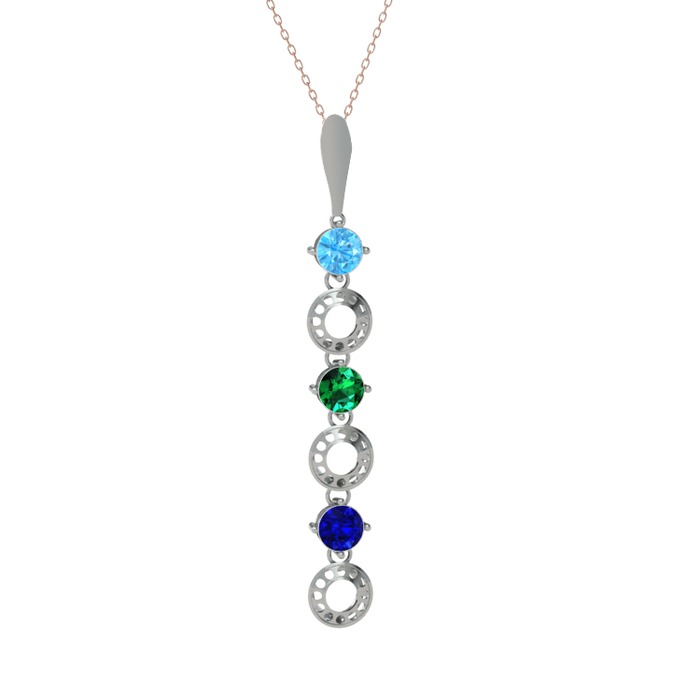 Akuamarin, yeşil kuvars ve lab safir 14 ayar beyaz altın kolye (40 cm rose altın rolo zincir)