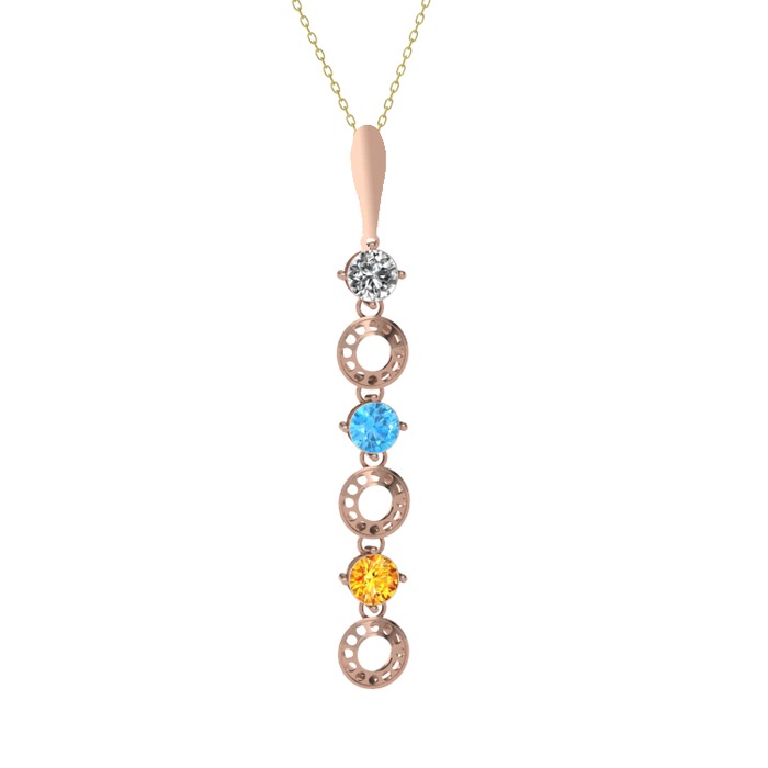 Beyaz zirkon, akuamarin ve sitrin 14 ayar rose altın kolye (40 cm altın rolo zincir)