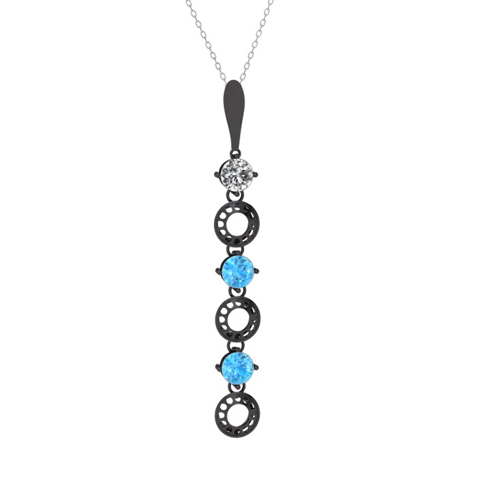 Beyaz zirkon ve akuamarin 925 ayar siyah rodyum kaplama gümüş kolye (40 cm beyaz altın rolo zincir)