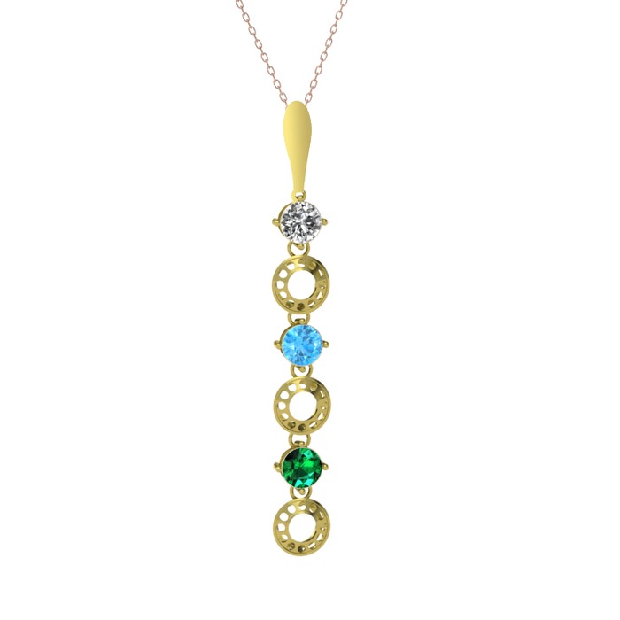 Beyaz zirkon, akuamarin ve yeşil kuvars 8 ayar altın kolye (40 cm rose altın rolo zincir)