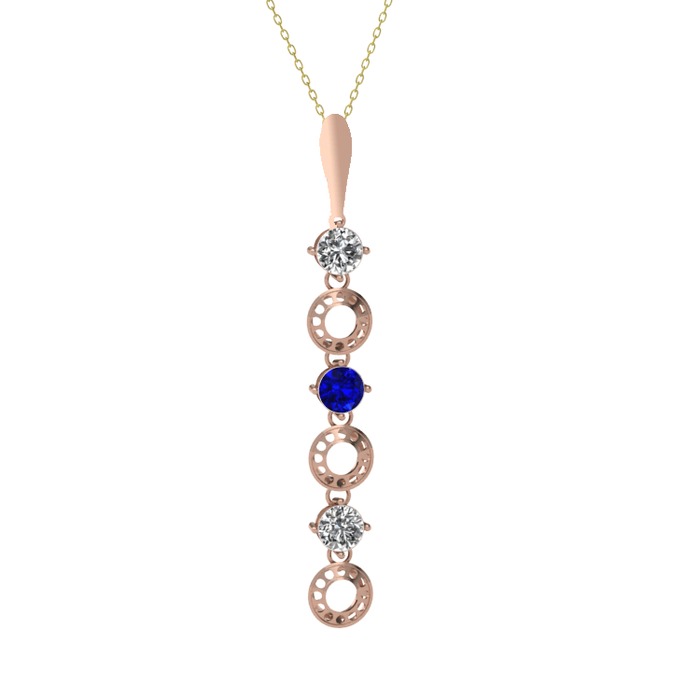 Beyaz zirkon ve lab safir 8 ayar rose altın kolye (40 cm gümüş rolo zincir)