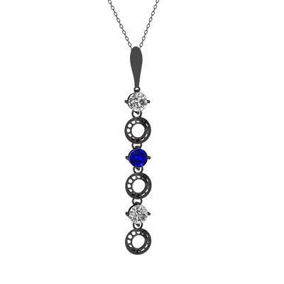 Beyaz zirkon ve lab safir 925 ayar siyah rodyum kaplama gümüş kolye (40 cm gümüş rolo zincir)