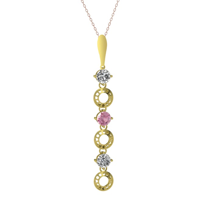Beyaz zirkon ve pembe kuvars 14 ayar altın kolye (40 cm rose altın rolo zincir)
