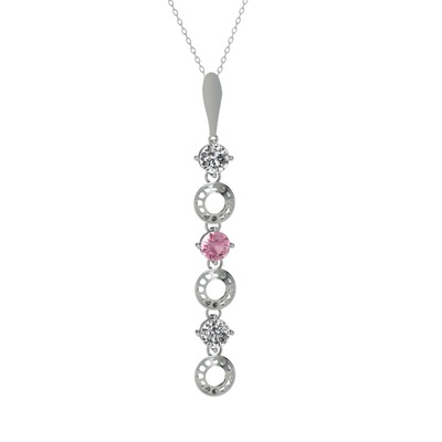 Beyaz zirkon ve pembe kuvars 925 ayar gümüş kolye (40 cm beyaz altın rolo zincir)