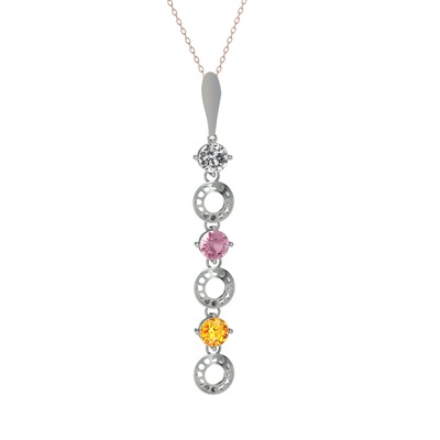 Beyaz zirkon, pembe kuvars ve sitrin 8 ayar beyaz altın kolye (40 cm rose altın rolo zincir)