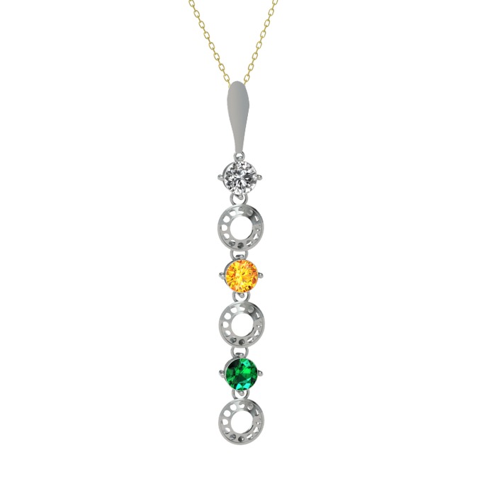 Beyaz zirkon, sitrin ve yeşil kuvars 14 ayar beyaz altın kolye (40 cm gümüş rolo zincir)