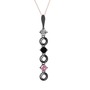 Beyaz zirkon, siyah zirkon ve pembe kuvars 925 ayar siyah rodyum kaplama gümüş kolye (40 cm rose altın rolo zincir)