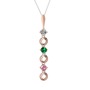 Beyaz zirkon, yeşil kuvars ve pembe kuvars 14 ayar rose altın kolye (40 cm beyaz altın rolo zincir)