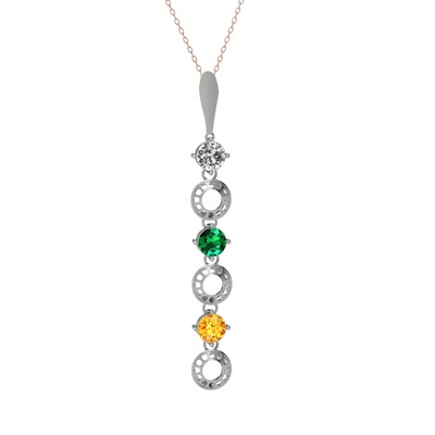 Beyaz zirkon, yeşil kuvars ve sitrin 14 ayar beyaz altın kolye (40 cm rose altın rolo zincir)