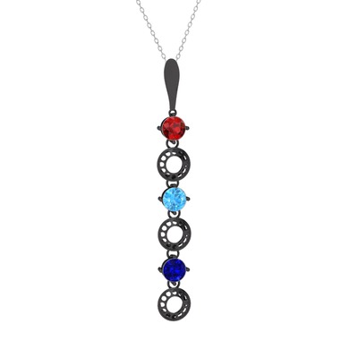 Garnet, akuamarin ve lab safir 925 ayar siyah rodyum kaplama gümüş kolye (40 cm beyaz altın rolo zincir)