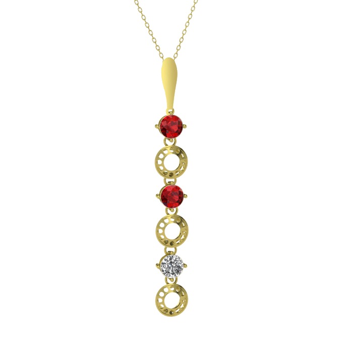 Garnet ve beyaz zirkon 925 ayar altın kaplama gümüş kolye (40 cm altın rolo zincir)