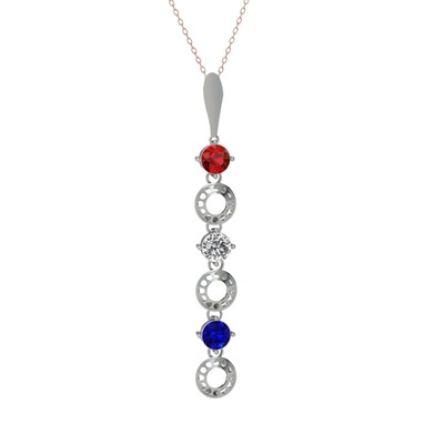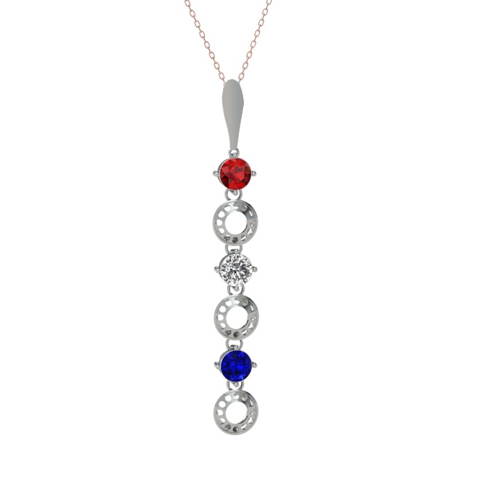 Garnet, beyaz zirkon ve lab safir 14 ayar beyaz altın kolye (40 cm rose altın rolo zincir)