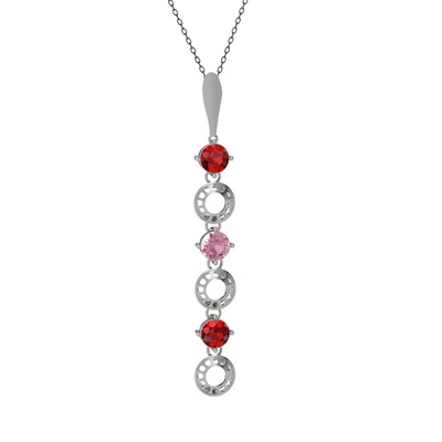 Garnet ve pembe kuvars 14 ayar beyaz altın kolye (40 cm gümüş rolo zincir)