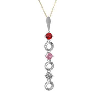 Garnet, pembe kuvars ve beyaz zirkon 925 ayar gümüş kolye (40 cm altın rolo zincir)
