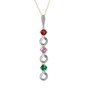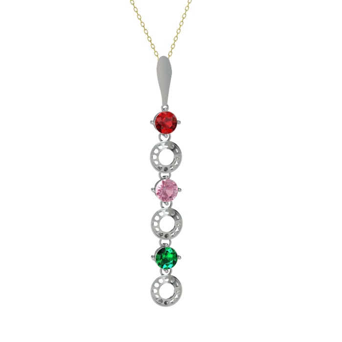 Garnet, pembe kuvars ve yeşil kuvars 14 ayar beyaz altın kolye (40 cm gümüş rolo zincir)