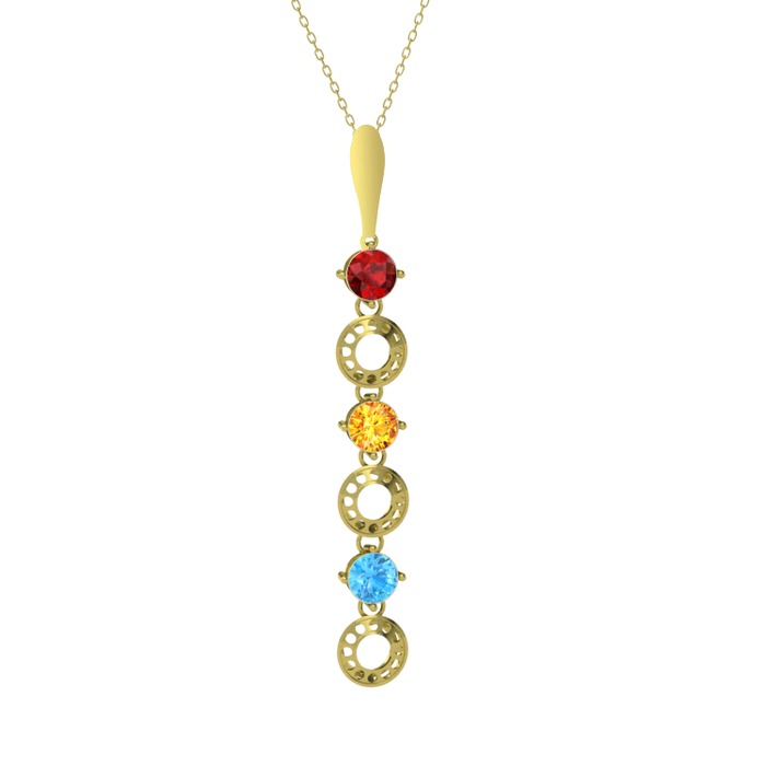 Garnet, sitrin ve akuamarin 8 ayar altın kolye (40 cm gümüş rolo zincir)