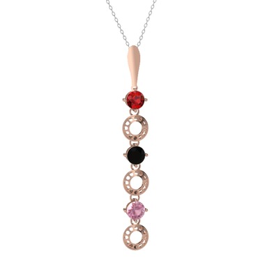 Garnet, siyah zirkon ve pembe kuvars 14 ayar rose altın kolye (40 cm beyaz altın rolo zincir)