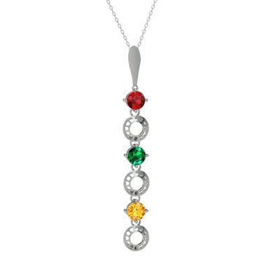 Garnet, yeşil kuvars ve sitrin 925 ayar gümüş kolye (40 cm beyaz altın rolo zincir)