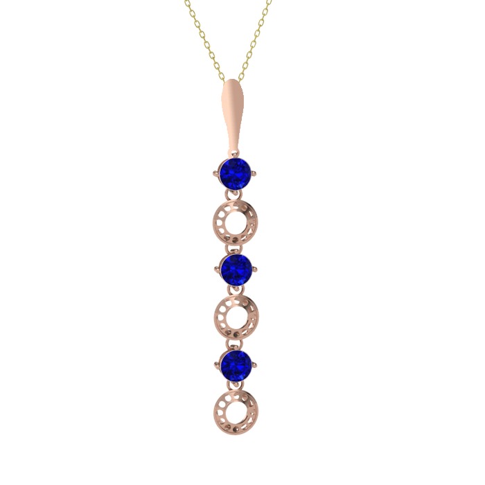 Lab safir 8 ayar rose altın kolye (40 cm gümüş rolo zincir)
