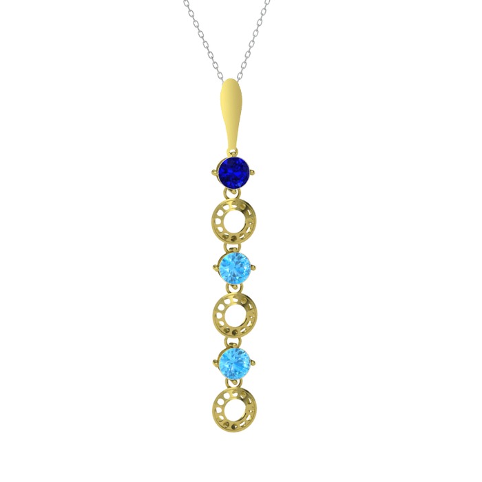 Lab safir ve akuamarin 8 ayar altın kolye (40 cm beyaz altın rolo zincir)