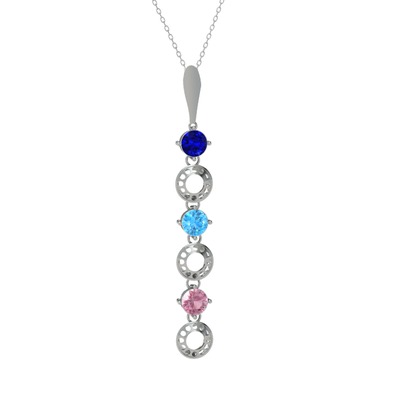 Lab safir, akuamarin ve pembe kuvars 14 ayar beyaz altın kolye (40 cm gümüş rolo zincir)