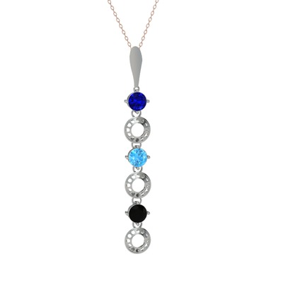 Lab safir, akuamarin ve siyah zirkon 8 ayar beyaz altın kolye (40 cm rose altın rolo zincir)