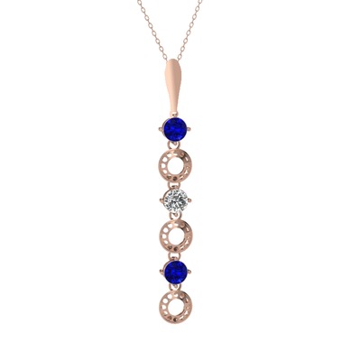 Lab safir ve beyaz zirkon 14 ayar rose altın kolye (40 cm rose altın rolo zincir)