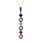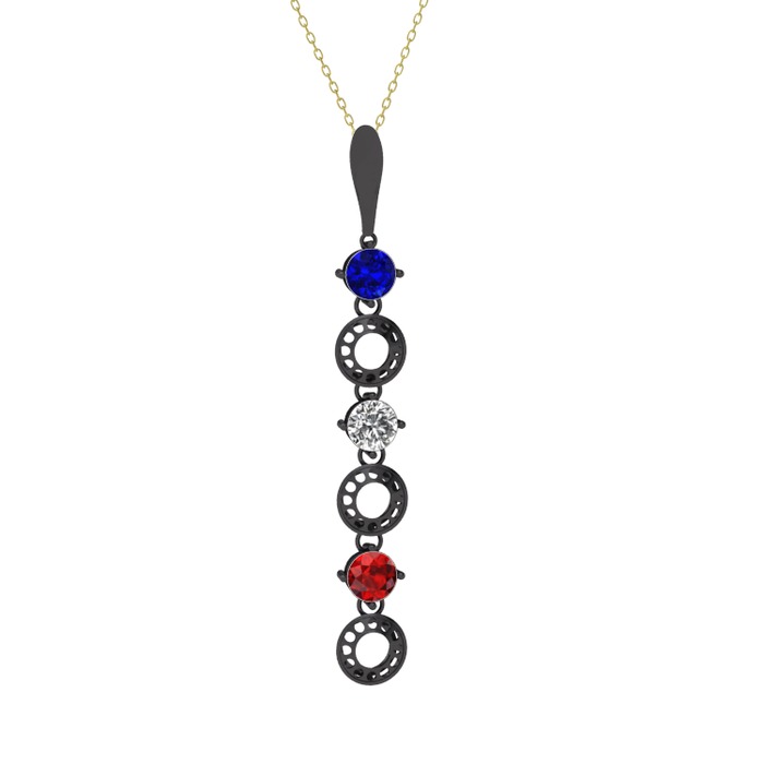 Lab safir, beyaz zirkon ve garnet 925 ayar siyah rodyum kaplama gümüş kolye (40 cm gümüş rolo zincir)