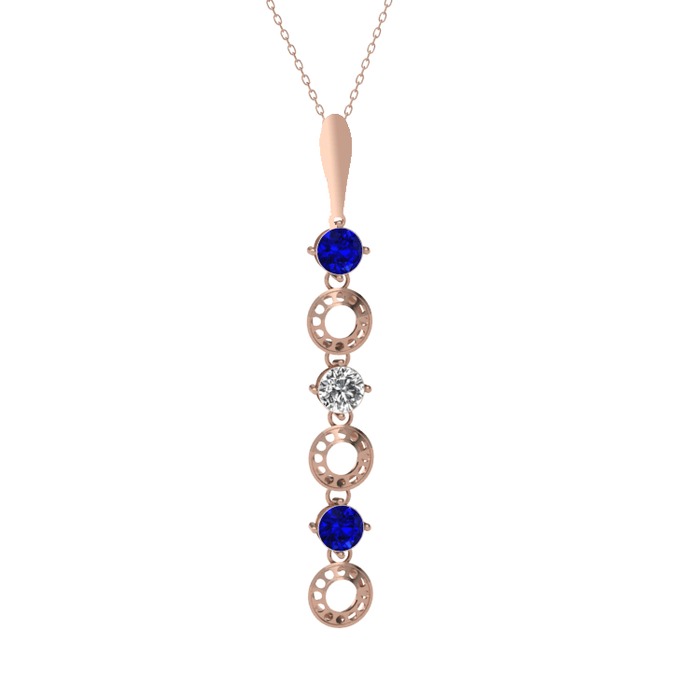 Lab safir ve beyaz zirkon 925 ayar rose altın kaplama gümüş kolye (40 cm rose altın rolo zincir)