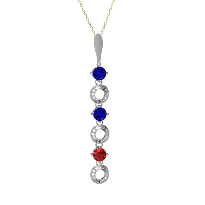 Lab safir ve garnet 14 ayar beyaz altın kolye (40 cm gümüş rolo zincir)