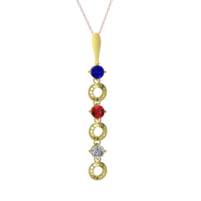 Lab safir, garnet ve beyaz zirkon 14 ayar altın kolye (40 cm rose altın rolo zincir)
