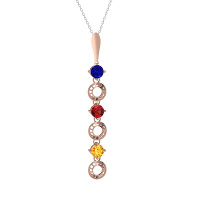 Lab safir, garnet ve sitrin 8 ayar rose altın kolye (40 cm gümüş rolo zincir)