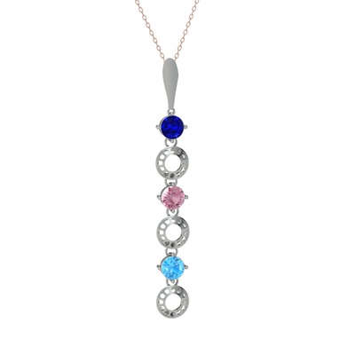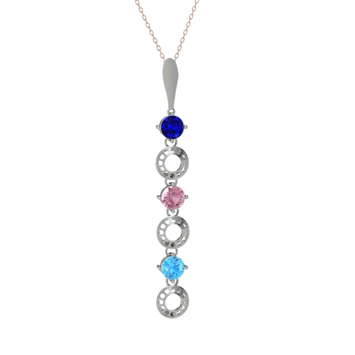 Lab safir, pembe kuvars ve akuamarin 8 ayar beyaz altın kolye (40 cm rose altın rolo zincir)